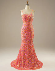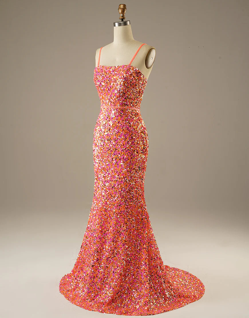 Sheath/Mermaid Sleek Glittering Sparkle Spaghetti Straps Prom Dress - Mlti-Color