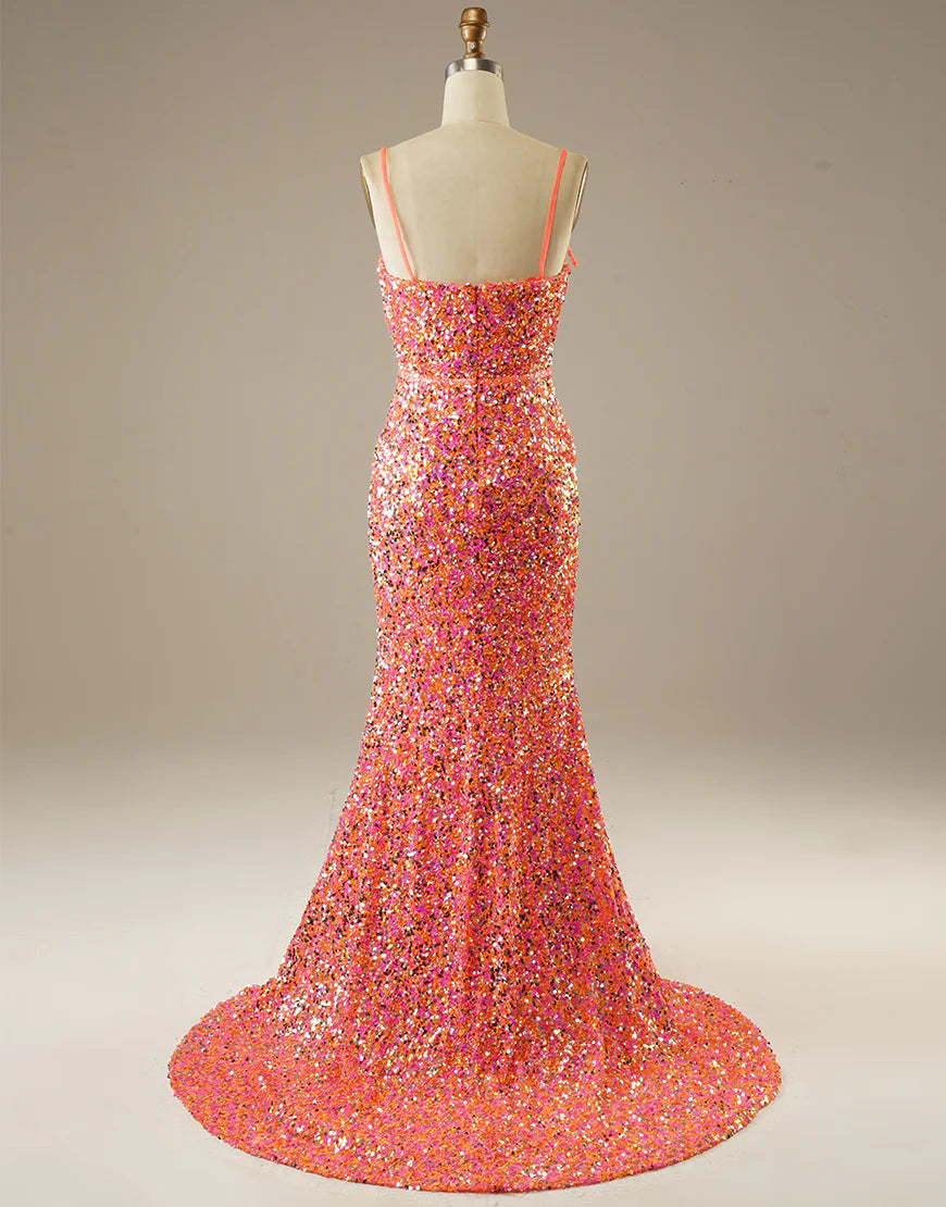 Sheath/Mermaid  Sleek Glittering Sparkle Spaghetti Straps Prom Dress