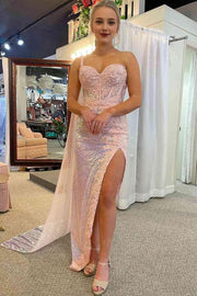 Sweep/Brush Train Dresses One Shoulder Lace Appliques Long Party Dress with Shoulder Cape