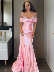 Trumpet/Mermaid Silk like Satin Ruched Sweetheart Sleeveless Court Train Dresses