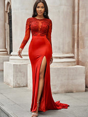 Trumpet/Mermaid Spandex Applique Scoop Long Sleeves Sweep/Brush Train Dresses - US 2 / UK 6 / EU 32