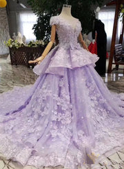 Ball Gown Quinceanera Dresses Purple Tulle Sweet 16 Dress Prom Dress With Lace Applique