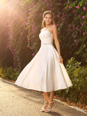 A-Line/Princess Sweetheart Beading Sleeveless Short Satin Wedding Dresses - As Picture / US 2 / UK 6 / EU 32