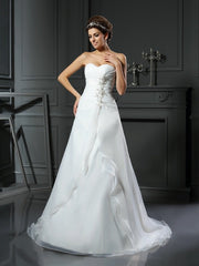 A-Line/Princess Sweetheart Ruched Sleeveless Long Satin Wedding Dresses - As Picture / US 2 / UK 6 / EU 32