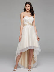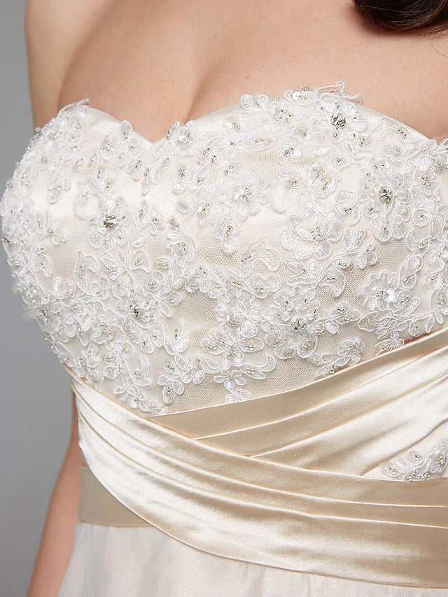A-Line Wedding Dresses Sweetheart Neckline Asymmetrical Satin Floral Lace Strapless Simple Plus Size with Sash Ribbon Beading