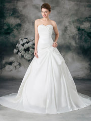 A-Line Wedding Dresses Sweetheart Neckline Court Train Satin Taffeta Strapless with Ruched Side-Draped
