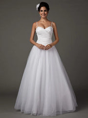 A-Line Wedding Dresses Sweetheart Neckline Spaghetti Strap Floor Length Taffeta Tulle Sleeveless