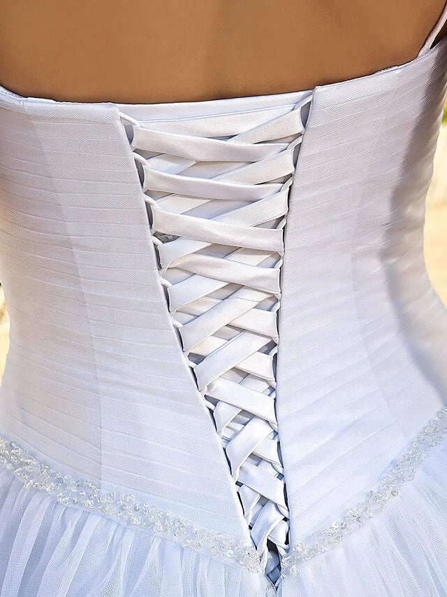 Ball Gown Wedding Dresses Sweetheart Neckline Floor Length Tulle Spaghetti Straps Sleeveless - White / US 2 / UK 6 / EU 32