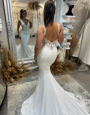 Mermaid Low V-Neck 3D Flower Lace Applique Wedding Dress