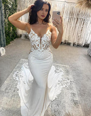 Mermaid V-Neck Spaghetti Strap Wedding Dress With Appliques