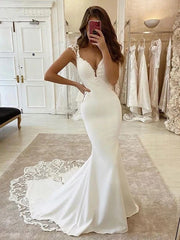 Sheath/Column Stretch Crepe Lace V-neck Sleeveless Sweep/Brush Train Wedding Dresses - As Picture / US 2 / UK 6 / EU 32