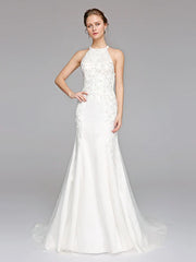 Wedding Dresses Halter NeckLace Over Tulle Regular Straps Sexy Illusion Detail Backless