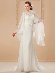 Wedding Dresses Jewel NeckLace Georgette Long Sleeve Beach Illusion Detail Backless with Lace