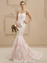 Wedding Dresses Sweetheart Neckline Court Train Lace Strapless Sexy Illusion Detail with Appliques Pink - Blushing Pink / US 2 / UK 6 / EU 32