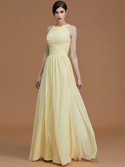 A-Line/Princess Halter Sleeveless Floor-Length Ruched Chiffon Bridesmaid Dresses