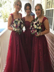 A-Line/Princess Sleeveless Straps Applique Floor-Length Tulle Bridesmaid Dresses - As Picture