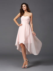 A-Line/Princess Sweetheart Ruffles Sleeveless High Low Chiffon Bridesmaid Dresses - As Picture
