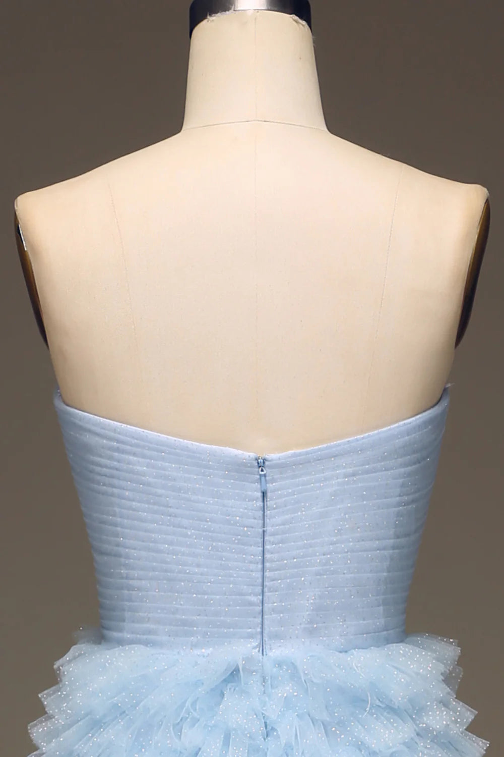 Prom Dresses Wedding Guest Evening Party Court Train Tulle Light Blue Train Sleeveless Tulle Prom Dress with Slit - US 2 / UK 6 / EU 32