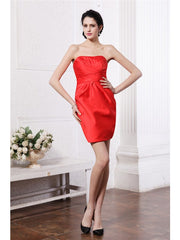 Sheath/Column Strapless Sleeveless Pleats Short Elastic Woven Satin Bridesmaid Dresses - Red
