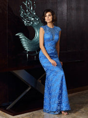 Trumpet/Mermaid High Neck Applique Sleeveless Long Satin Mother of the Bride Dresses - As Picture