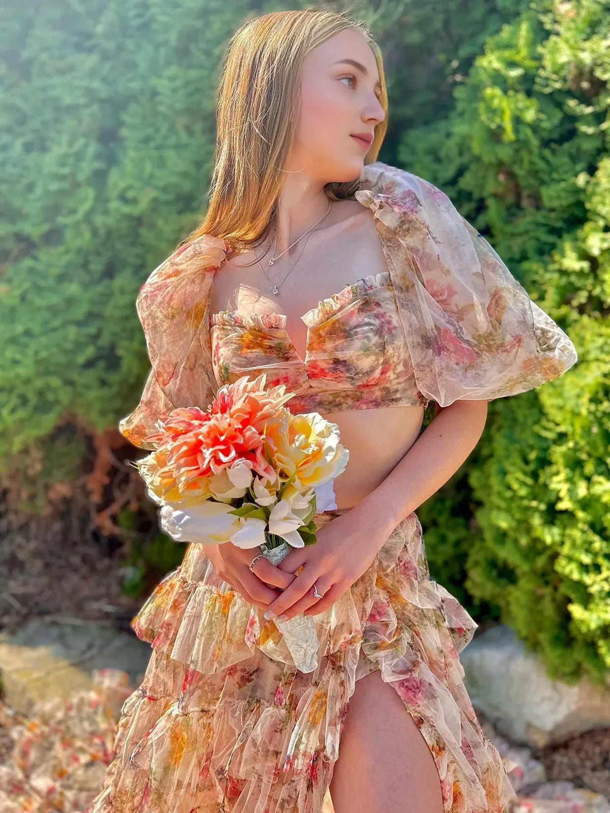 A Line 2 Piece Square Neck Flower Long Prom Dress