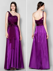 A-Line Bridesmaid Dress Straps Sleeveless Convertible Dress Floor Length Tulle with Ruched / Side Draping - Show As picture