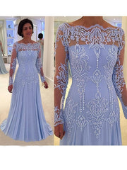 A-Line Chiffon Applique Scoop Long Sleeves Sweep/Brush Train Mother of the Bride Dresses