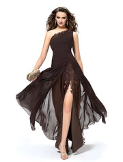 A-Line Elegant Sexy Party Wear Formal Evening Dress One Shoulder Backless Sleeveless Floor Length Chiffon with Slit Lace Insert
