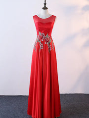 A-Line Evening Gown Elegant Dress Prom Floor Length Sleeveless Jewel Neck Satin with Embroidery Appliques 1 review $74.99