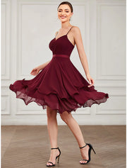 A-Line Homecoming Dresses Elegant Dress Cocktail Short / Mini Sleeveless Sweetheart Chiffon with Pure Color Tiered - US 2 / UK 6 / EU 32