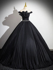 A-Line Off the Shoulder Quinceanera Dresses Pleated Black Long Prom Dress with Rhinestone Sash