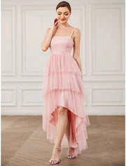 A-Line Party Dresses Vintage Dress Prom Knee Length Sleeveless Spaghetti Strap Tulle with Ruched Asymmetrical