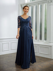 Elegant A-Line V-neck Floor-Length Mother of the Bride Dresses Chiffon Wedding Guest Dress Party Dress with Appliques