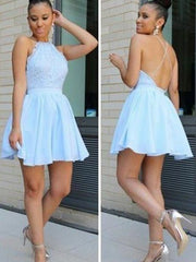 A-Line/Princess Halter Sleeveless Lace Short/Mini Chiffon Dresses