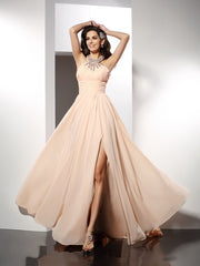 A-Line/Princess Jewel Ruffles Sleeveless Long Chiffon Dresses