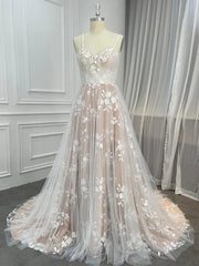 A-Line/Princess Lace Ruffles Sweetheart Sleeveless Sweep/Brush Train Wedding Dresses Beautiful
