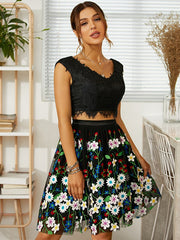 A-Line/Princess Lace V-neck Sleeveless Knee-Length Two Piece Dresses