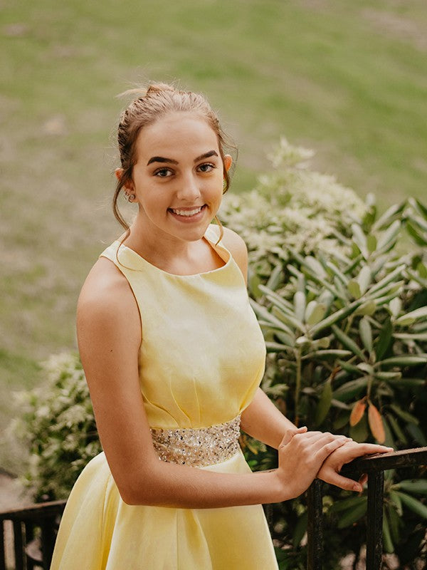 A-Line/Princess Satin Beading Scoop Sleeveless Short/Mini Homecoming Dresses
