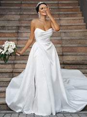A-Line/Princess Satin Ruffles Sweetheart Sleeveless Chapel Train Wedding Dresses