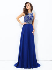 A-line/Princess Scoop Beading Sleeveless Long Chiffon Party Dresses Formal Dresses