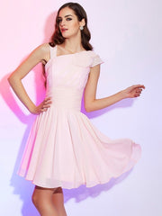 A-Line/Princess Sleeveless Pleats Short Chiffon Homecoming Dresses