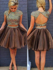 A-Line/Princess Sleeveless Scoop Beading Short/Mini Organza Two Piece Dresses Cocktail Dresses