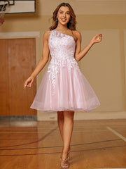 A-Line/Princess Tulle Lace One-Shoulder Sleeveless Short/Mini Dresses