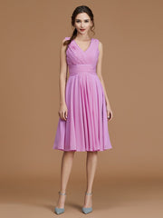 A-Line/Princess V-neck Sleeveless Short/Mini Ruched Chiffon Bridesmaid Dresses