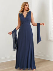A-line/Princess V-neck to floor length mother of the bride dresses Dark Navy - US 2 / UK 6 / EU 32