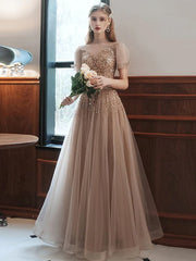 A-Line Prom Dresses Sparkle Dress Engagement Floor Length Sleeveless High Neck Tulle with Bow(s) Beading Sequin