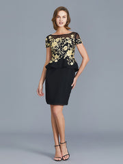 Sheath/Column Scoop Ruffles Short Sleeves Knee-Length Chiffon Mother of the Bride Dresses