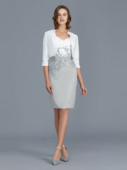 A Line Sheath/Column V-neck 1/2 Sleeves Ruffles Chiffon Knee-Length Mother of the Bride Dresses