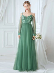 A-Line Spaghetti Strap Tulle Bridesmaid Dress with Appliques