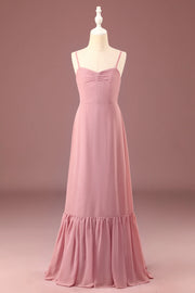 A-line Spaghetti Straps Chiffon Long Bridesmaid Dress - Dusty Rose